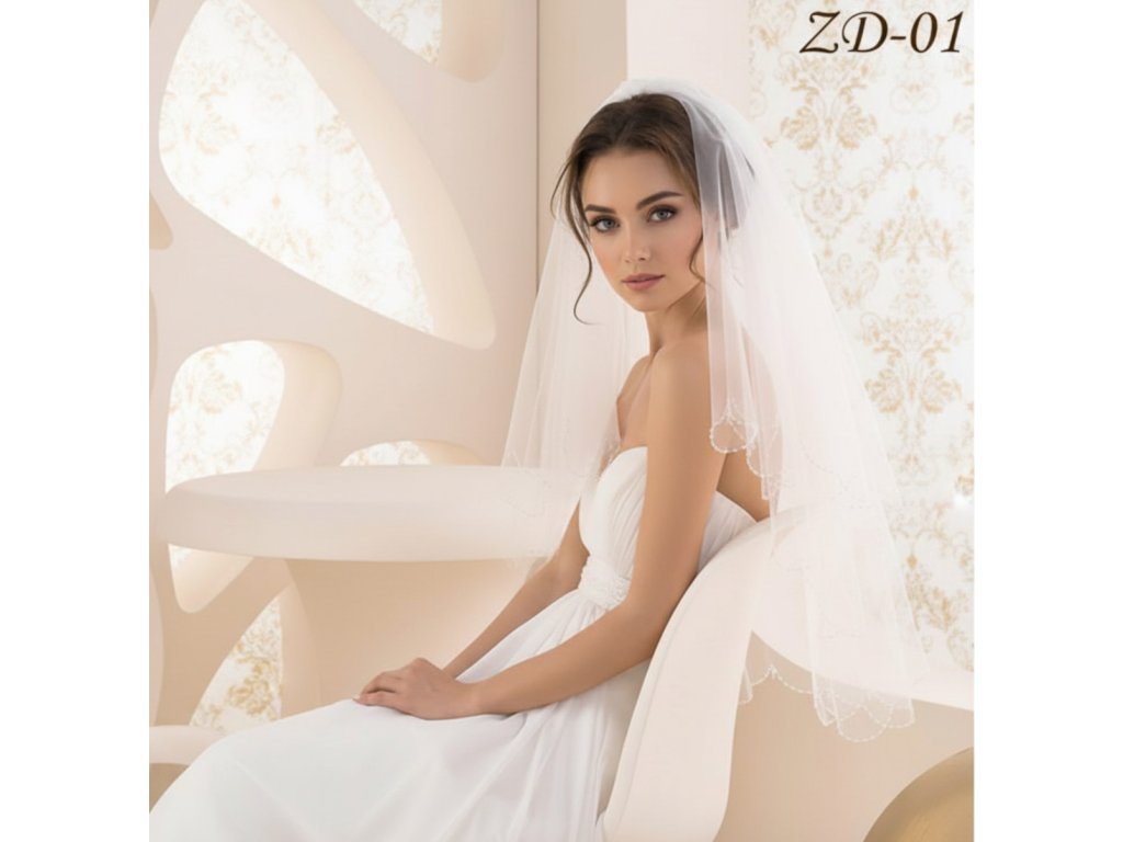 Svadobný závoj lemovaný korálkami a kryštály ZD-01