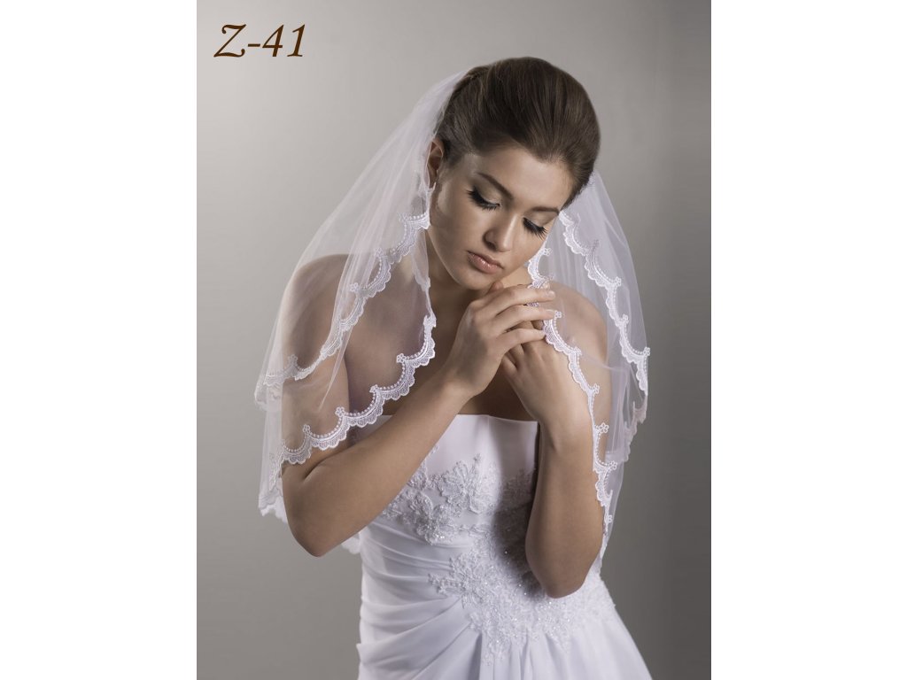 › Svadobné závoje › Svadobný závoj lemovaný úzkou čipkou Z-41, biely