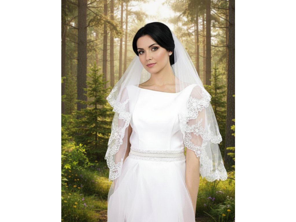 Dvojvrstvový svadobný závoj s kvetinovou výšivkou.