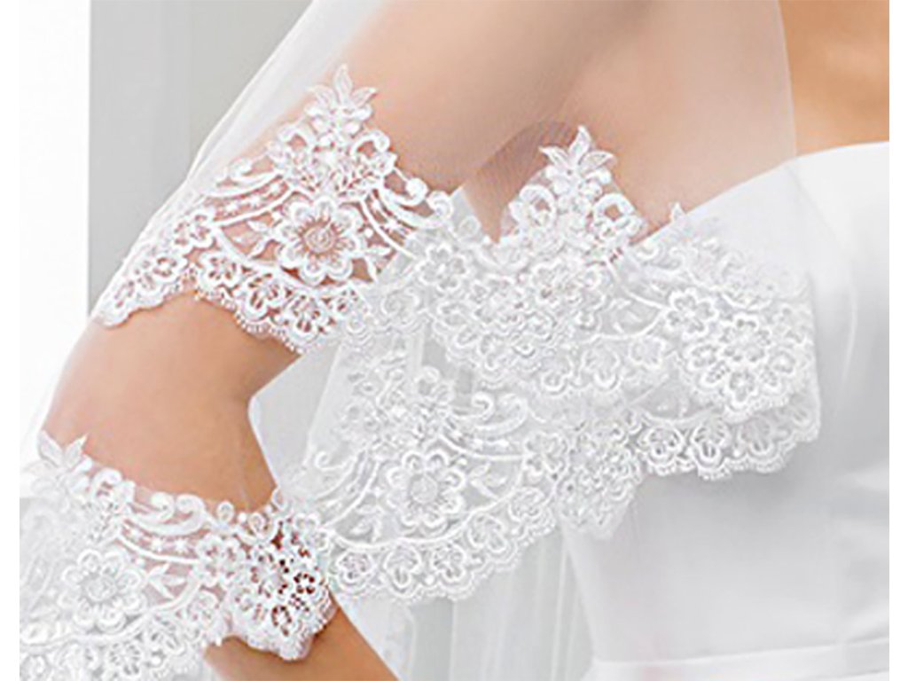 Dvojvrstvový svadobný závoj s krásnou kvetinovou čipkou.