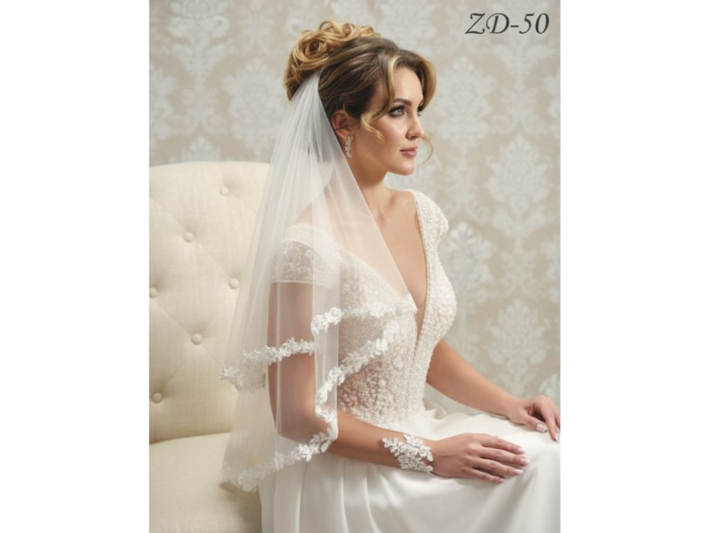 Svadobný závoj s nádherným čipkovým lemom ZD-50