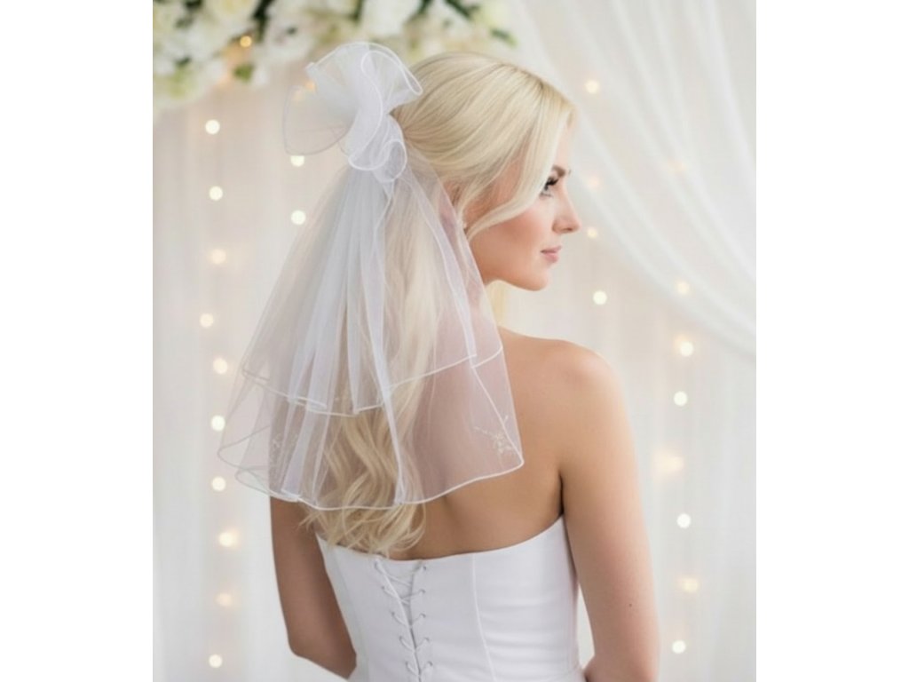 Svadobný závoj Z-408 biely, ručne vyšívaný - dopredaj
