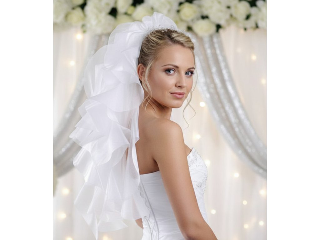 Svadobný závoj z lesklej organzy Z-103 biely/ivory