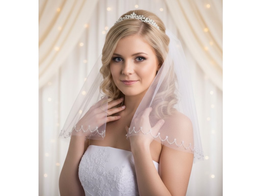 Svadobný závoj zdobený 2000 korálkami Z-405 biely