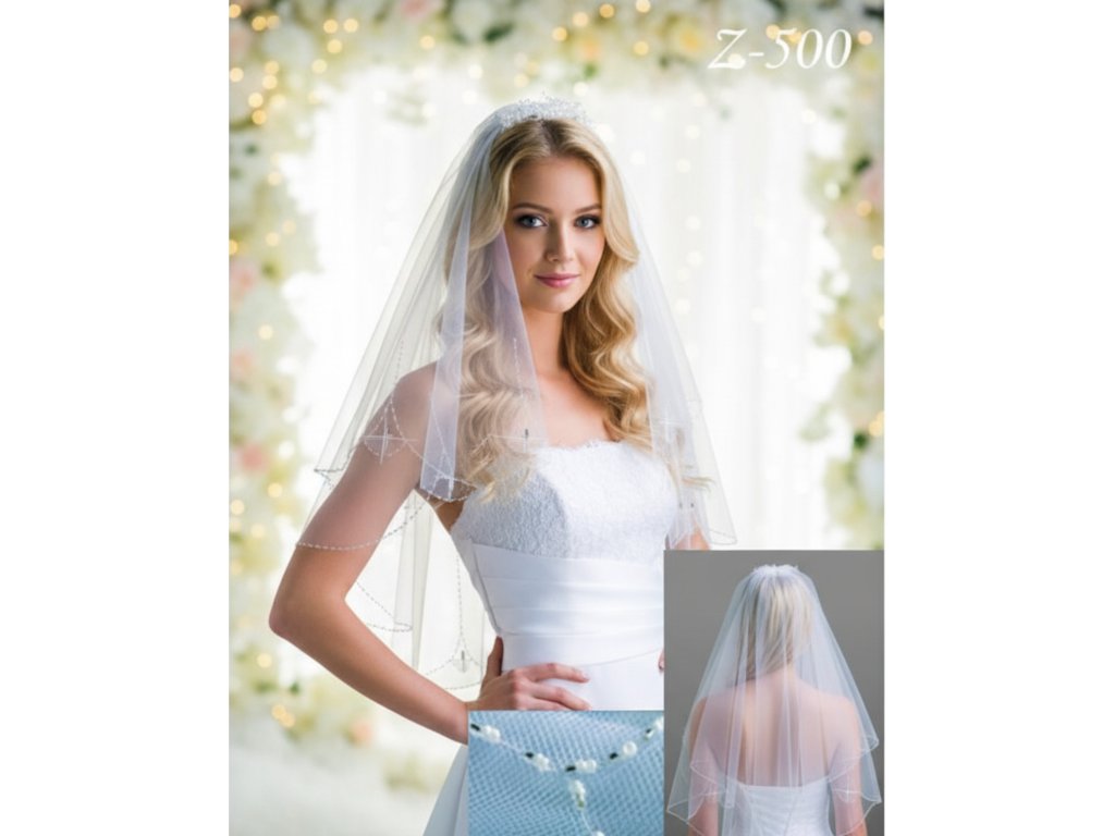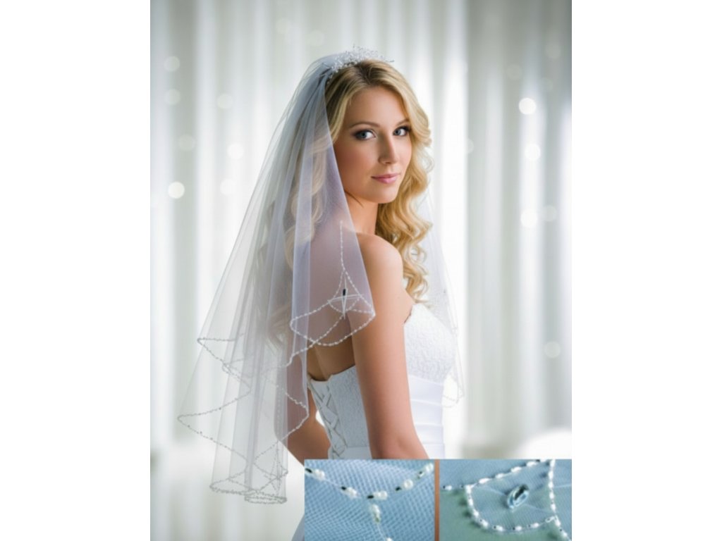 Svadobný závoj zdobený 2700 korálkami Z-500 biely