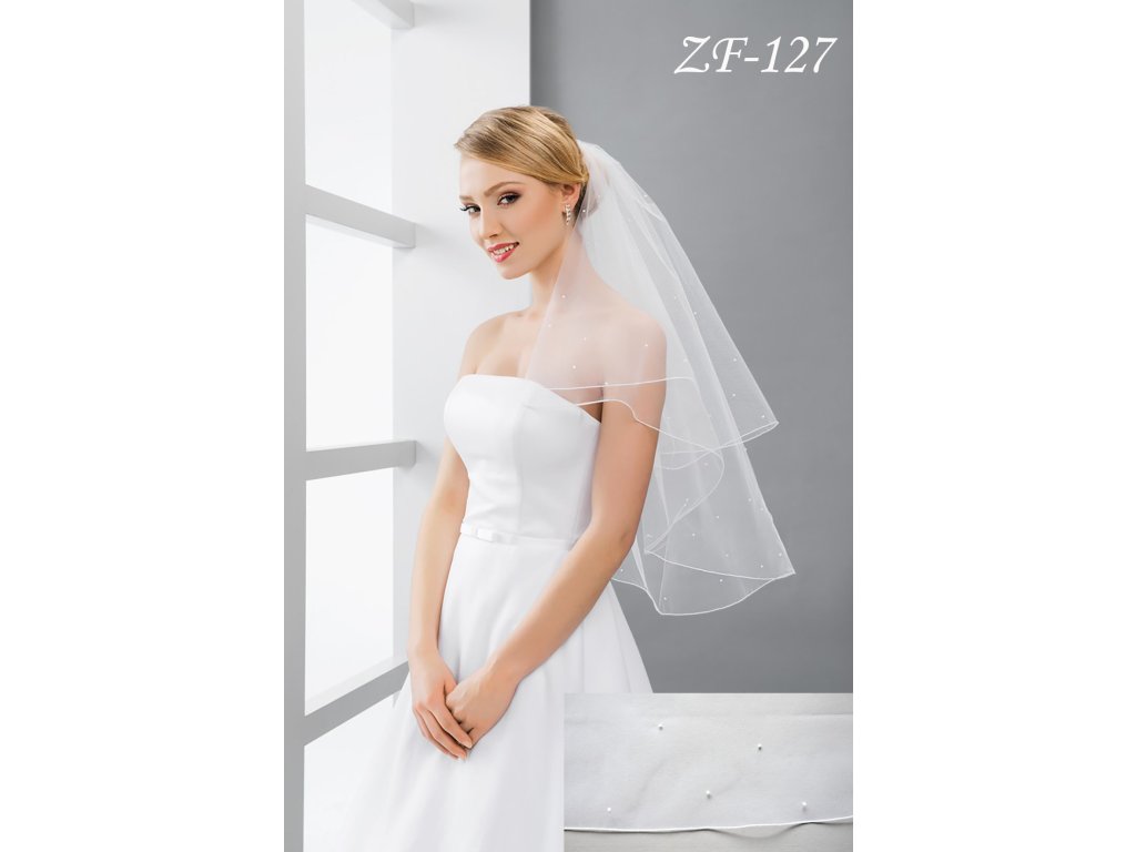 Tylový svadobný závoj, zdobený perlami ZF-127