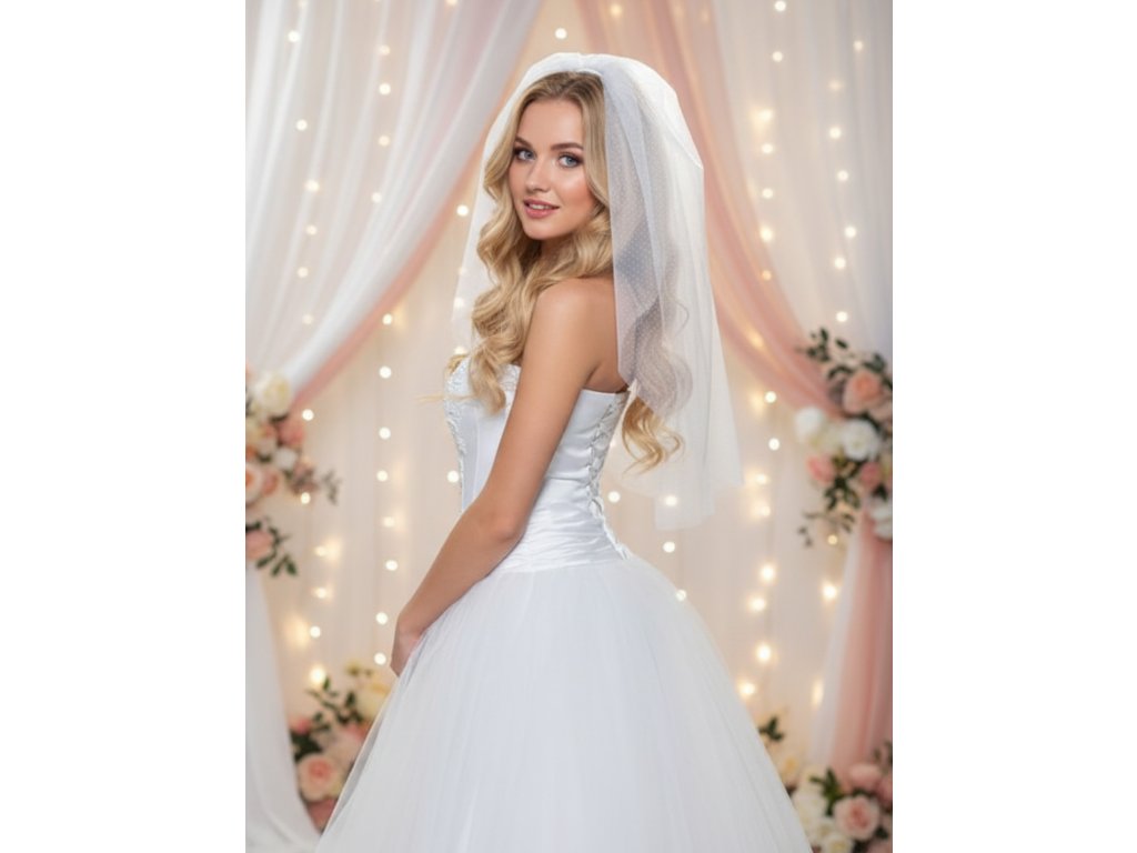 Tylový svadobný závoj s bodkami, bez lemovania.